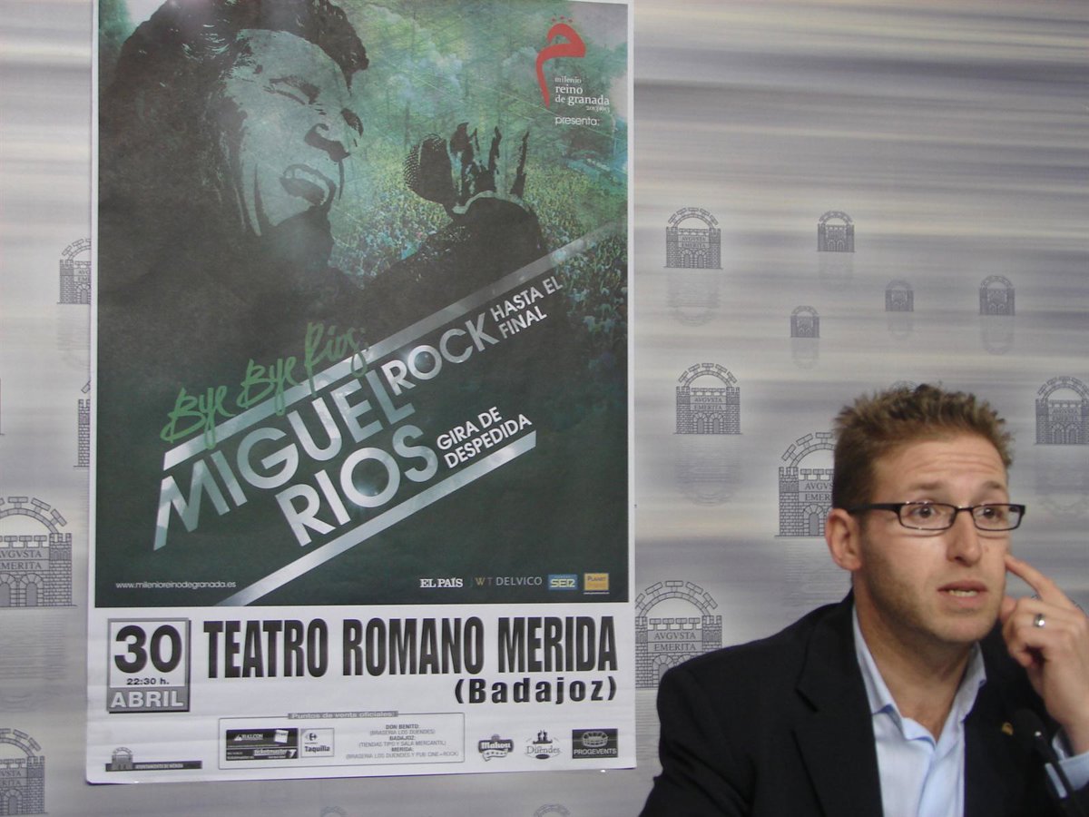 Este concierto ha sido presentado por el delegado de Juventud y Turismo en el Ayuntamiento de Mérida, Roberto Olivera, quien ha explicado que con su actuación, Miguel Ríos podrá fin a una gira en la que se despide tras una carrera musical de casi medio siglo.