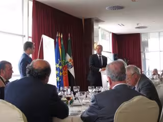 En un almuerzo en Badajoz con empresarios extremeños y portugueses enmarcado en el Día de la Cooperación Europea 2012, ha abogado por el apoyo a los empresarios y emprendedores y ha traslado a los asistentes que, desde el ejecutivo autonómico, creen en sus empresas y quieren ofrecerles "las mejores condiciones para hacerlas prosperar".