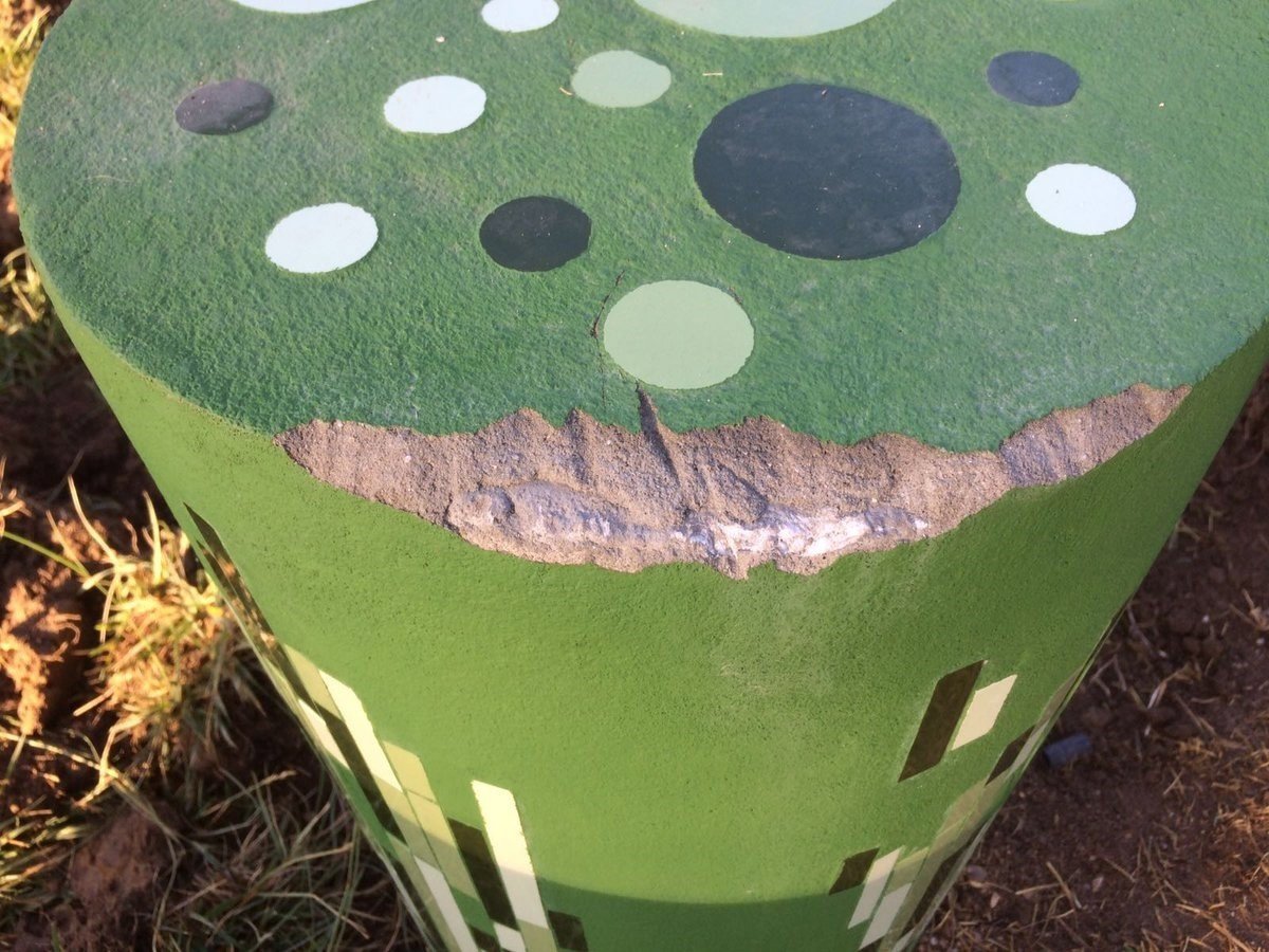 Los autores del hecho han utilizado martillo y radial para dañar los seis cilindros que componen este monumento, cada uno de ellos en uno de los colores del arco iris, simulando la bandera de la comunidad de LGTBI.