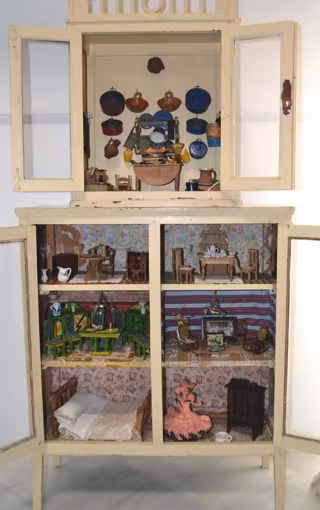 Se trata de una pieza que se encuentra habitualmente en la sala de juguetes, y se compone de dos muebles independientes, uno superior en el que se representa una cocina rural, y otro inferior dividido en seis dependencias o habitaciones, tres comedores, una sala de estar y un dormitorio que ocupa las dos inferiores.