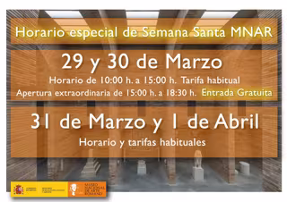 Por su parte, la Colección Visigoda tendrá el siguiente horario, siempre con entrada gratuita, en concreto, el jueves y viernes, días 29 y 30, de 10,00 a 18,30 horas; y el sábado 31 y el domingo 1 de abril con la apertura habitual, informa el Museo Nacional de Arte Romano en nota de prensa.