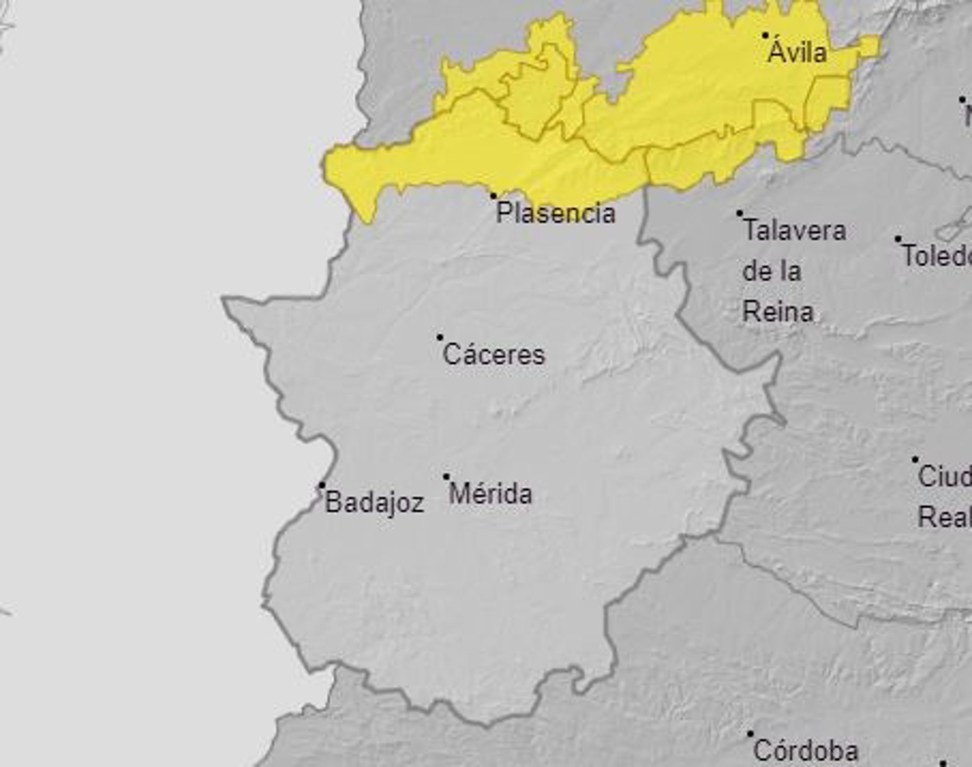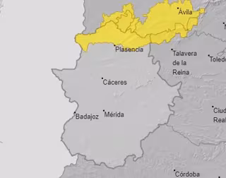 Además de esta zona de la provincia cacereña, también estarán en riesgo por lluvias zonas del Sistema Central de Salamanca y Ávila, así como de la costa gallega.
