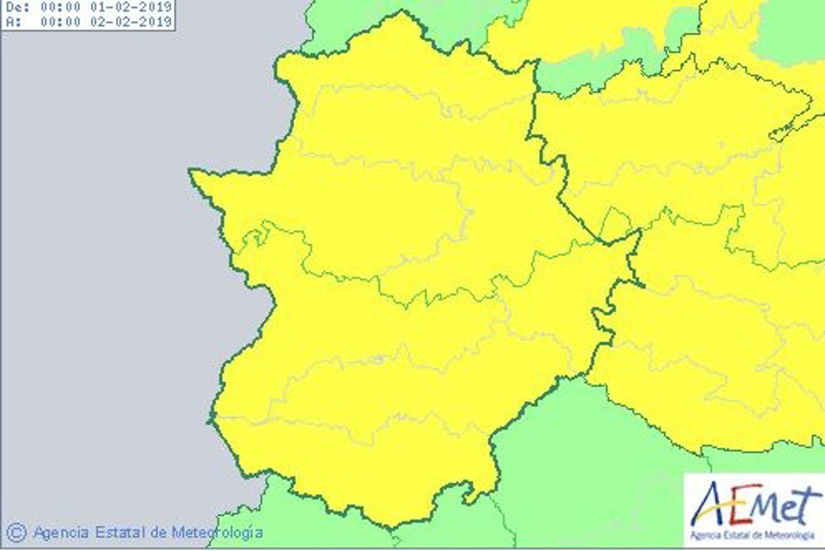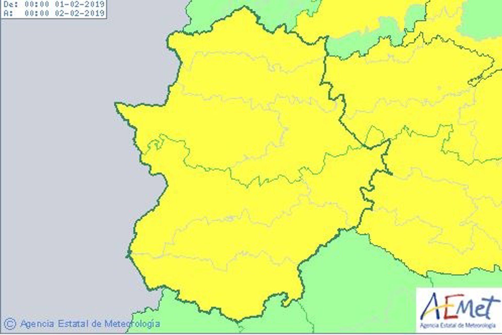 Por su parte, el viernes se activarán avisos por fuertes rachas de viento que podrán alcanzar los 80 kilómetros por hora en el norte de Cáceres, y que se activarán a las 9,00 horas, y de 70 en el resto de la provincia, a partir de las 10,00, así como en toda la provincia de Badajoz.