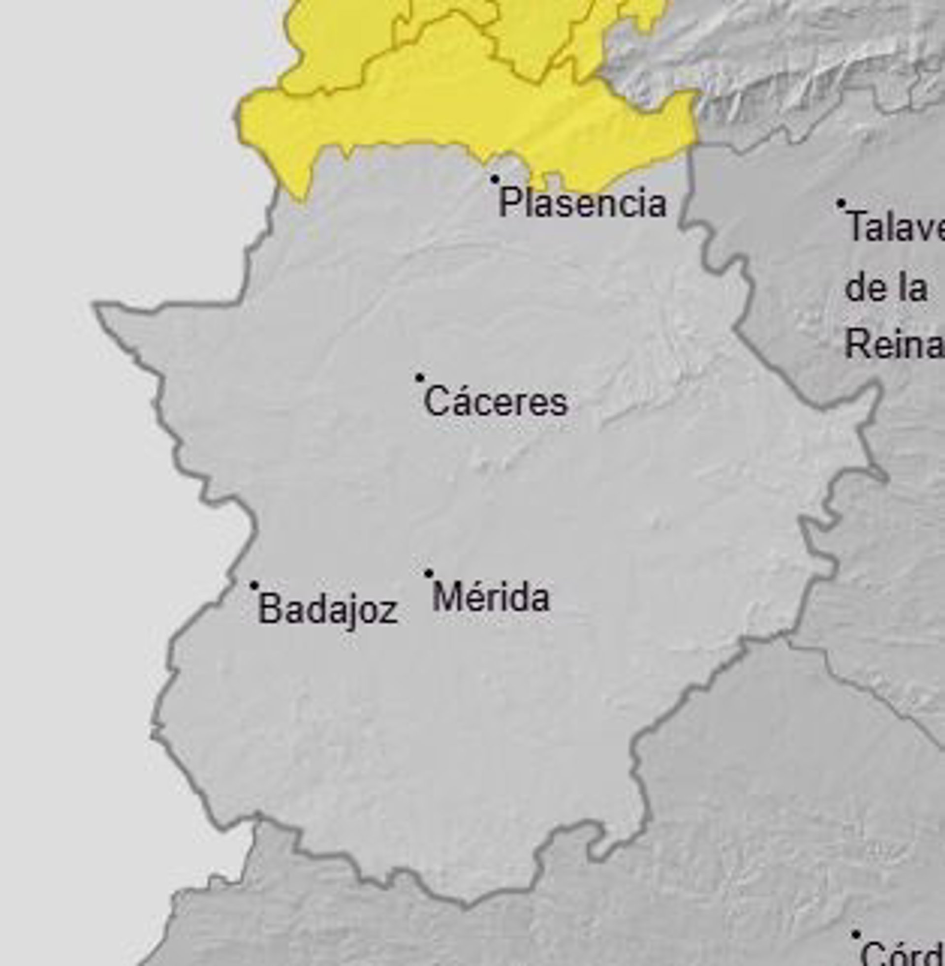 El norte de la provincia de Cáceres permanecerá este martes, 24 de junio, en aviso amarillo por lluvias y tormentas, que podrán ir acompañadas de granizo.