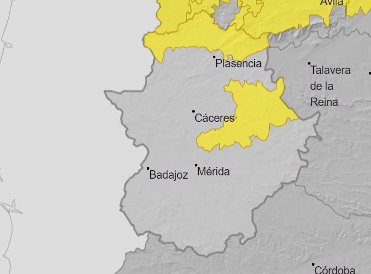 Así, el aviso en el norte de la provincia cacereña comenzará a las 12,00 horas y terminará a las 23,59 de este viernes, donde se podrán producir rachas máximas de 80 kilómetros por hora.