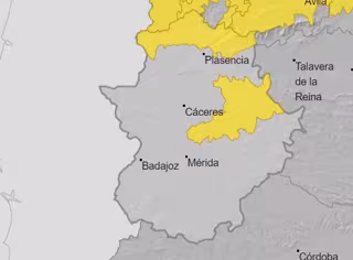 Por su parte, el aviso en Villuercas y Montánchez empezará a las 15,00 horas y se dará por concluido a las 23,59 horas del viernes, por rachas máximas de hasta 70 kilómetros por hora, según informa la Agencia Estatal de Meteorología (Aemet).
