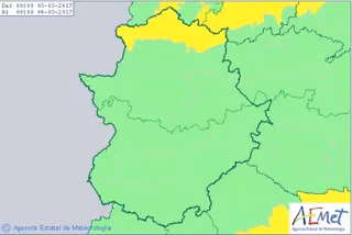 En cuanto al viento, la alerta amarilla del Centro 112 Extremadura se fija entre las 10,00 y las 17,00 horas, cuando las rachas de viento podrían alcanzar los 80 kilómetros por hora, igualmente en el norte de Cáceres, según informa la Junta de Extremadura en nota de prensa.