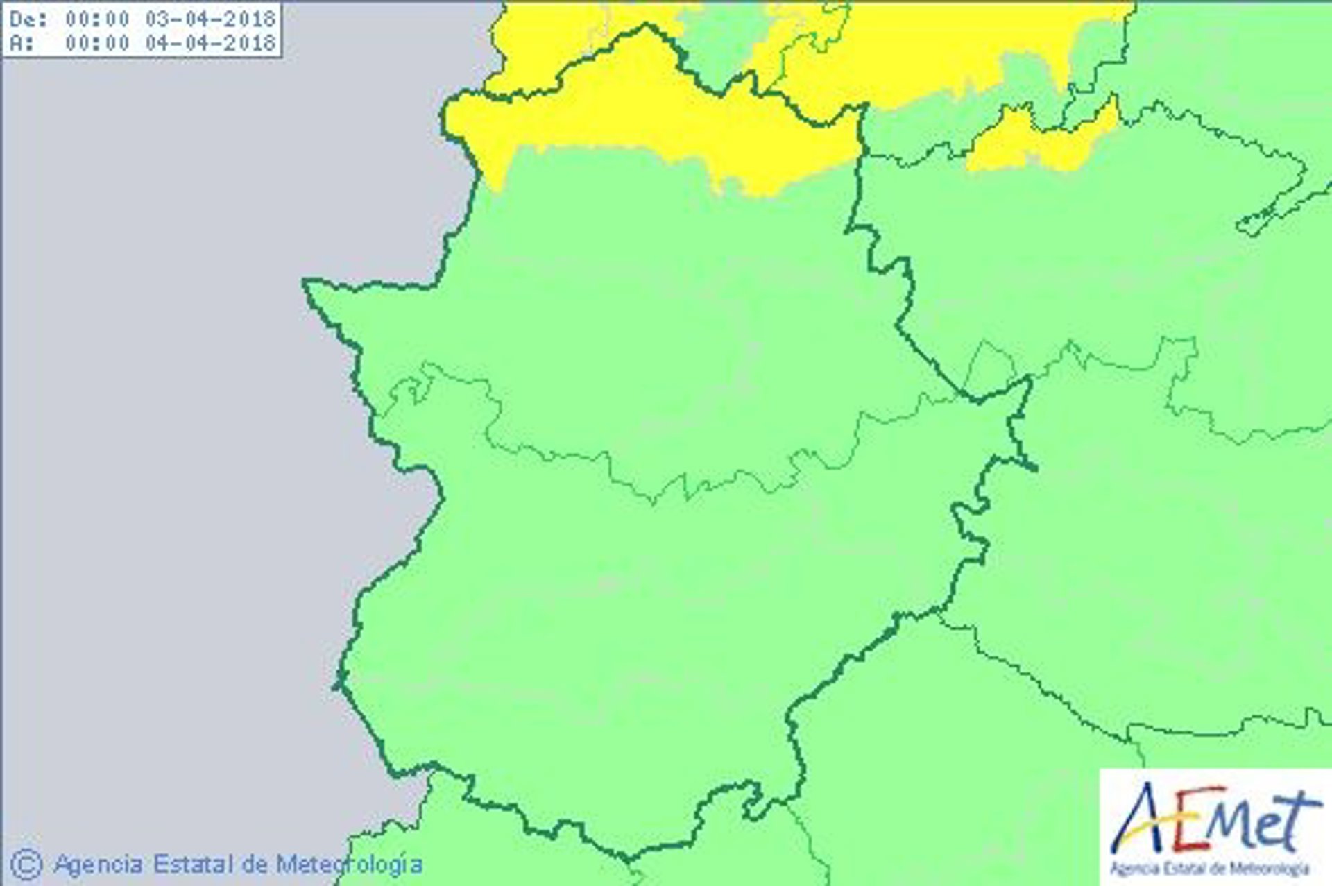 El norte de la provincia de Cáceres permanecerá este martes, 3 de abril, en aviso amarillo por fuertes vientos, que podrán alcanzar rachas máximas de 80 kilómetros por hora.