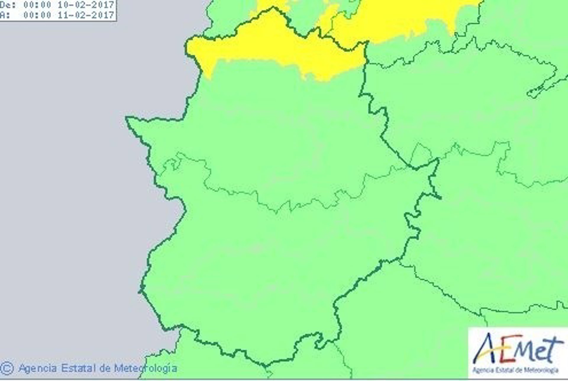 La Agencia Estatal de Meteorología (Aemet) ha activado el aviso amarillo en el norte de la provincia de Cáceres desde las 00,00 horas de este viernes, y hasta las 00,00 horas del sábado, 11 febrero 2017 a las 00:00 hora oficial.