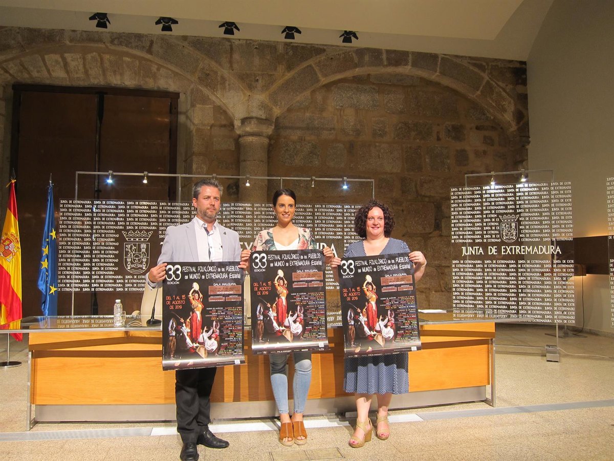 Este certamen ha sido presentado este jueves en Mérida por la consejera de Cultura de la Junta de Extremadura, Nuria Flores; el presidente de la Federación Extremeña de Folklore, Pedro García Barroso y la directora del Festival, Laura Llera.