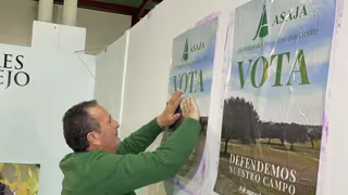Archivo - El candidato de Asaja Juan Metidieri, en la pegada de carteles de las pasadas elecciones al campo - ASAJA - Archivo