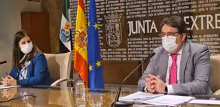 La consejera de Igualdad y portavoz de la Junta, Isabel Gil Rosiña, y el vicepresidente segundo y consejero de Sanidad, José María Vergeles, en rueda de prensa - JUNTA DE EXTREMADURA