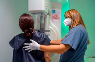 Archivo - Una señora con ayuda de una enfermera se hace una mamografía - Eduardo Briones - Europa Press - Archivo