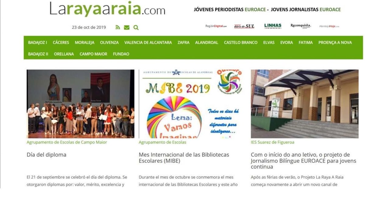 Uno de los principales atractivos y alicientes de esta iniciativa ha sido la creación de un canal digital asociado al proyecto, https://www.larayaaraia.com/, así como el apoyo de medios de comunicación a ambos lados de La Raya. La difusión de las noticias elaboradas por estudiantes de los centros participantes en Diário do Sul, Reconquista, regiondigital.com o Linhas de Elvas, suponen un elemento motivador para la implicación en esta iniciativa del alumnado, que en 2019 alcanzará a 450 escolares.