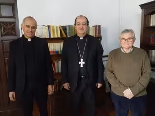 El obispo de Coria-Cáceres, Jesús Pulido, en el centro, junto al vicario general, Diego Zambrano, y el vicario de Pastoral y Evangelización, Jesús Moreno - EUROPA PRESS