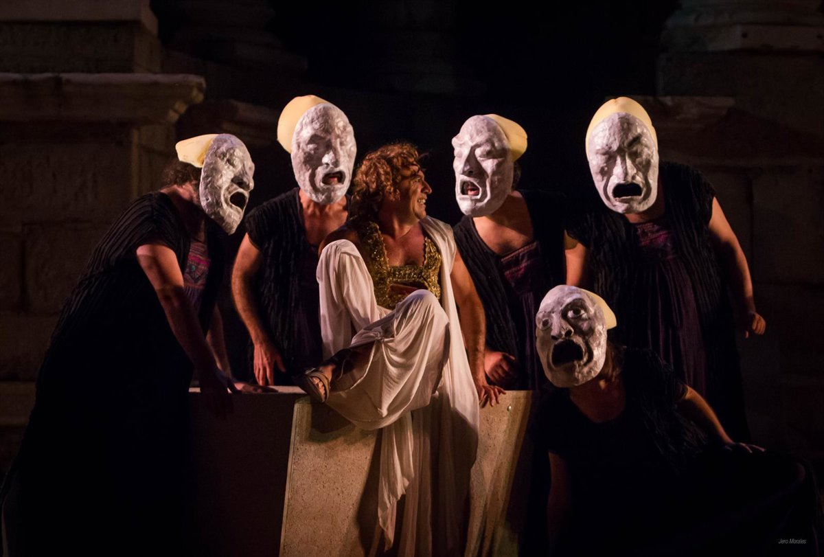 La compañía extremeña Teatro del Noctámbulo pone en escena esta obra que "mantiene la esencia grecolatina al tiempo que rebosa frescura, naturalidad y cercanía", algo a lo que también contribuye el "trabajo de ocho actores" encabezados por José Vicente Moirón y Memé Tabares.