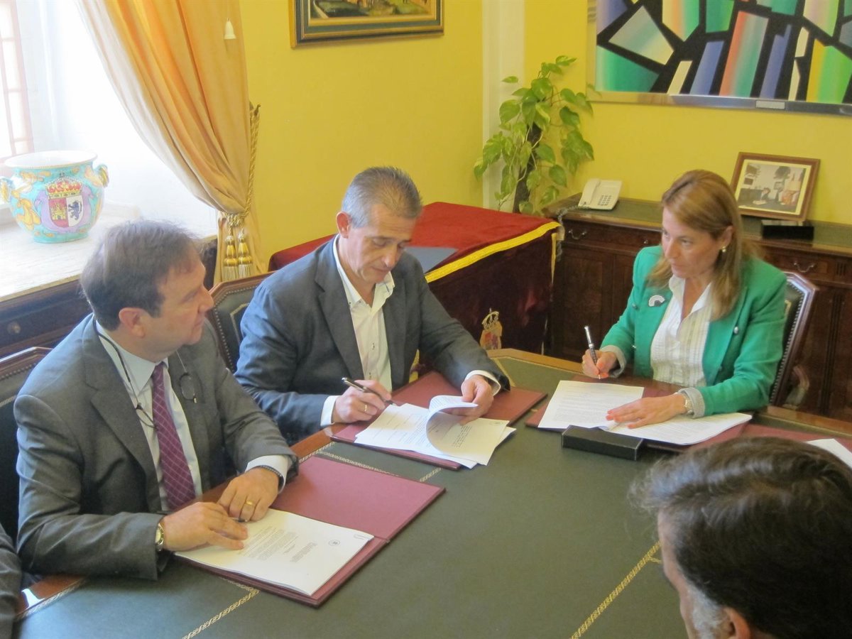 Las obras del párking subterráneo que se va a construir en la avenida Primo de Rivera en Cáceres comenzarán, como muy tarde, en noviembre y tendrán un plazo de ejecución de once meses, según se recoge en el contrato de ejecución que ha firmado este martes la alcaldesa de la ciudad, Elena Nevado, y los representantes de la UTE Herce-Riosa, Manuel Javier del Amo Santamaría y Javier Díaz Sánchez-Bravo, empresa que se encargará de construir la infraestructura.
