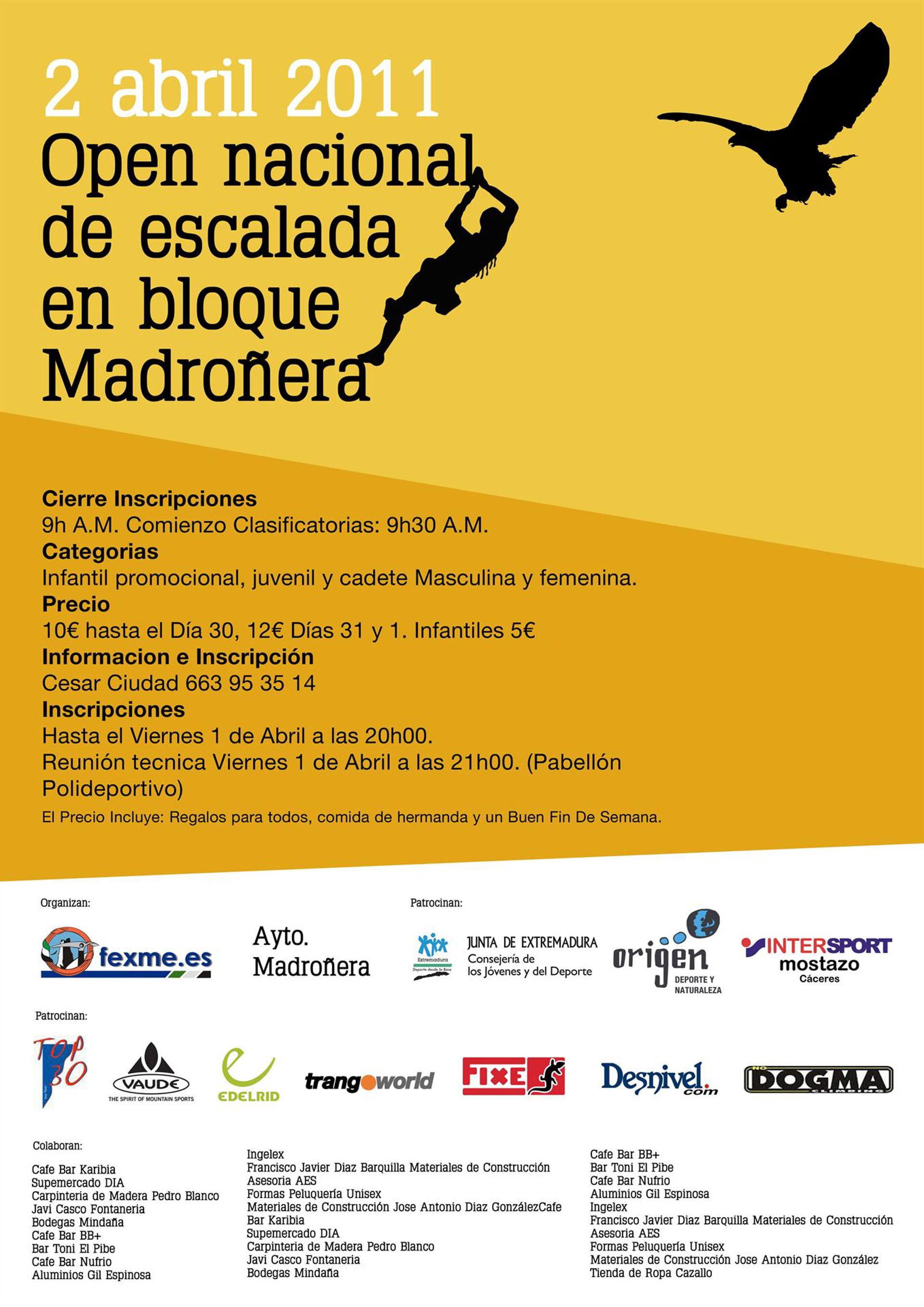 La localidad de Madroñera (Cáceres) será sede el próximo 2 de abril de la celebración del I Open Nacional de Escalada en Bloque.
