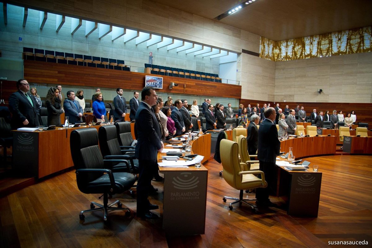 El pleno del Parlamento extremeño ha guardado un minuto de silencio este jueves en repulsa por el atentado terrorista contra la revista satírica francesa 'Charlie Hebdo'.