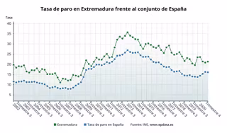 Tasa de paro en Extremadura en 2020 frente al conjunt de España - EPDATA