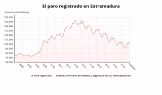 El número de parados registrados en las oficinas de los servicios públicos de empleo (antiguo Inem) de Extremadura ha subido en 18 desempleados en febrero (+0,02%), según datos del Ministerio de Trabajo y Economía Social publicados este martes. El volumen total de parados en la comunidad extremeña ha alcanzado al finalizar febrero la cifra de 105.246 desempleados.