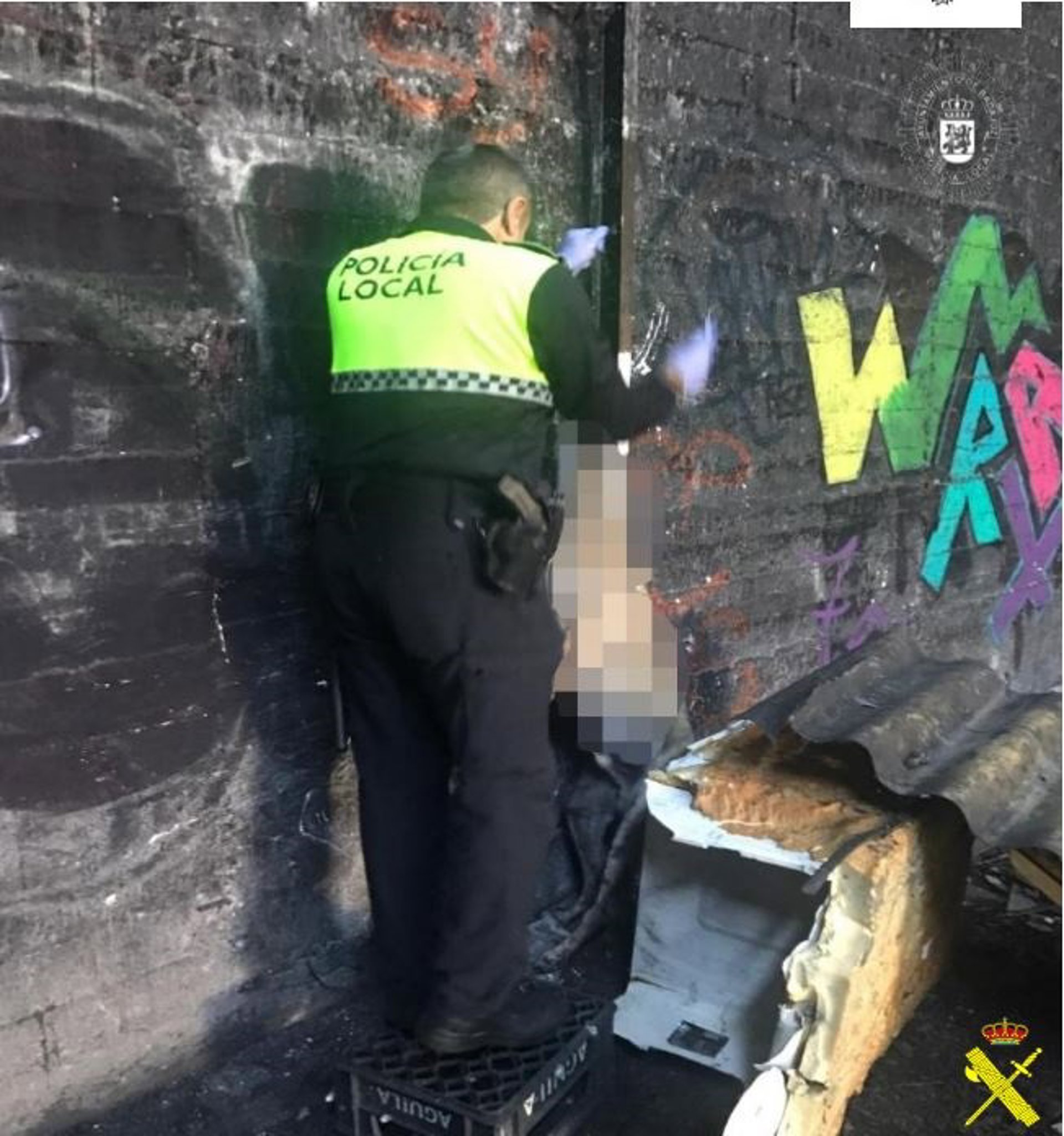 Al llegar al lugar una dotación de proximidad de la Policía Local, pudieron comprobar cómo dentro de la nave aparecía un perro de raza galgo colgado del techo por una cuerda, por lo que en presencia de los Servicios Veterinarios de la Clínica Clinivex, los agentes "procedieron a cortar la cuerda del animal, ya cadáver y descolgarlo de la situación tan desagradable que presentaba".