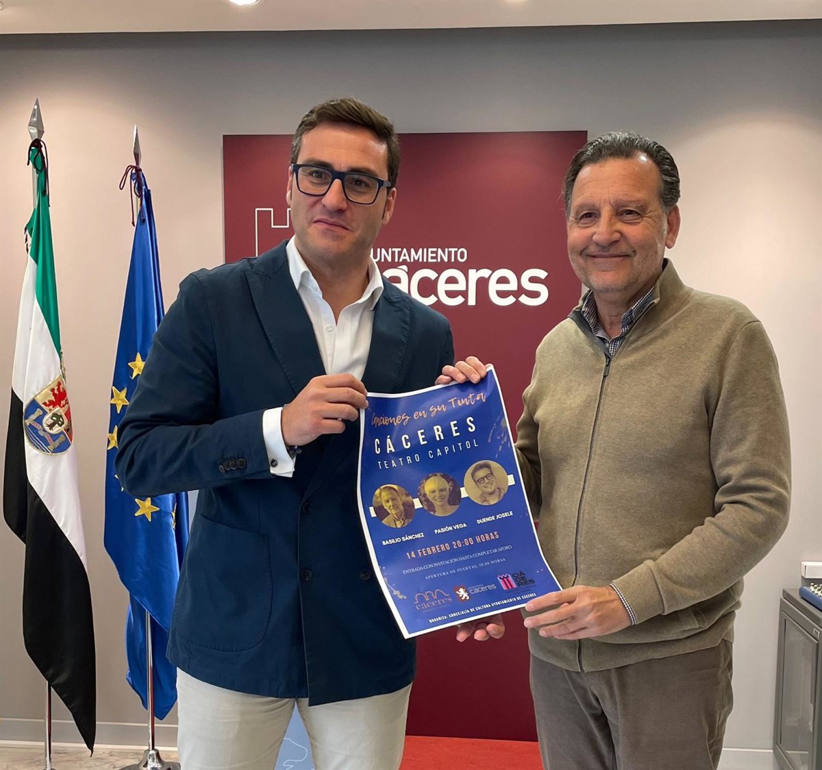 El objetivo de esta iniciativa es ofrecer a la sociedad cacereña poesía y música fusionada, "intercambiando no solo poetas importantes como Basilio Sánchez con artistas a nivel nacional e internacional como Pasión Vega", según ha indicado el concejal de Cultura, Jorge Suárez, en la presentación de esta segunda edición junto al poeta cacereño Basilio Sánchez.