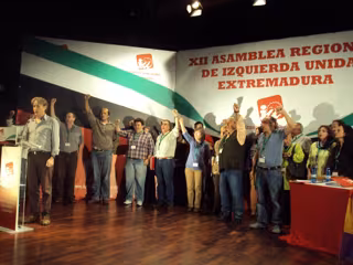 La XII Asamblea Regional de IU Extremadura ha finalizado con un largo aplauso por parte de los asistentes al recién reelegido coordinador, y cantando la Internacional.