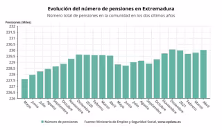 Evolución del número de pensiones en Extremadura este mes de abril - EPDATA