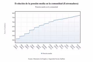 La pensión media en Extremadura ha alcanzado los 777,48 euros en junio, con un crecimiento del 1,6 por ciento en relación con el mes de junio de 2017, aunque es la más baja del país.