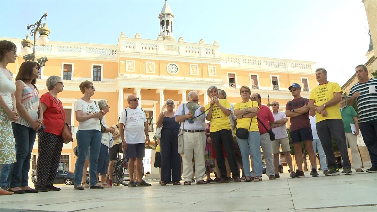 Alrededor de unas 60 personas se han concentrado este lunes en Badajoz, frente a las puertas del ayuntamiento, para reclamar unas pensiones "dignas", que estén "blindadas en la Constitución" y no al "vaivén" de los gobiernos.