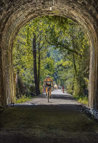 Archivo - Un ciclista en la Vía verde de la Plata. - JUNTA DE EXTREMADURA - Archivo