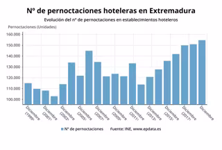 Evolución de las pernoctaciones hoteleras en Extremadura en diciembre - EPDATA