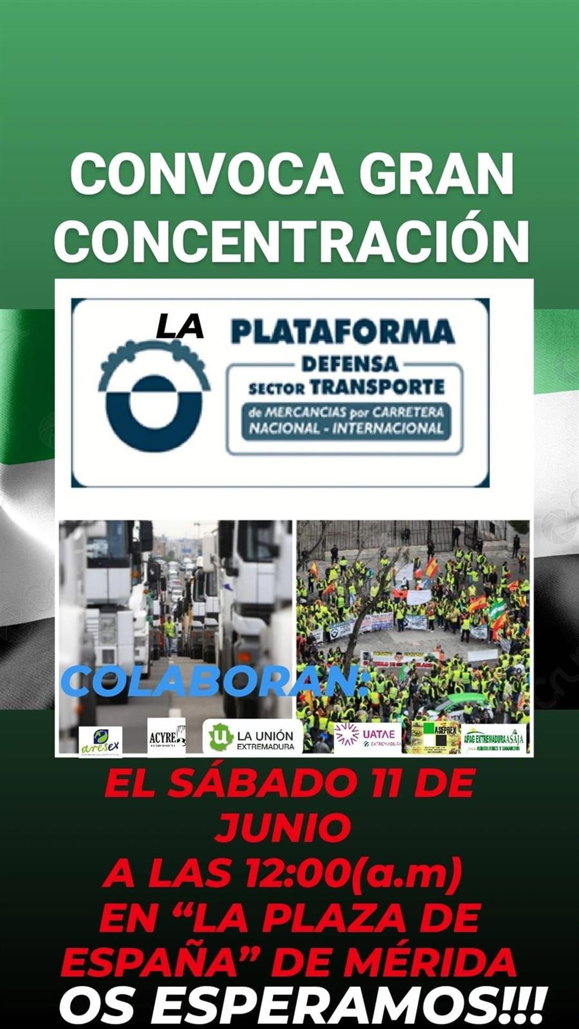 Cartel de la protesta de transportistas en Mérida - PLATAFORMA EN DEFENSA DEL SECTOR DEL TRANSPORTE