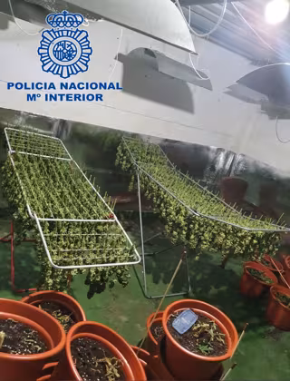 La planta ya se había recolectado y se encontraba en proceso de secado para su posterior venta y se intervinieron 7.610 gramos de cogollos y los elementos habituales para la aceleración de la floración de la marihuana, como transformadores, focos halógenos, extractores o ventiladores.