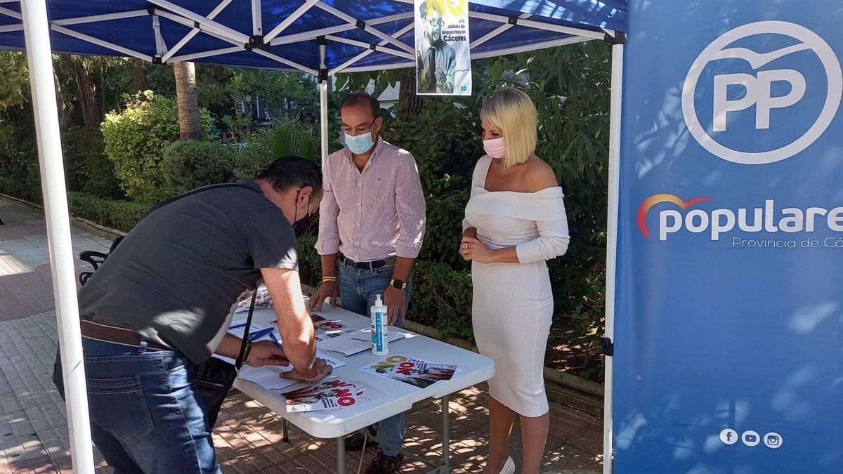 El PP instala una mesa en el Paseo de Cánocas para recoger firmas contra la subida de impuestos en Cáceres - EUROPA PRESS