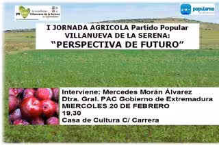 El PP de la localidad pacense de Villanueva de la Serena ha organizado para este miércoles, 20 de febrero, una jornada agrícola en la que se analizará "en profundidad" las expectativas y la situación que se abre en el sector en el contexto de la reforma de la Política Agraria Común (PAC).