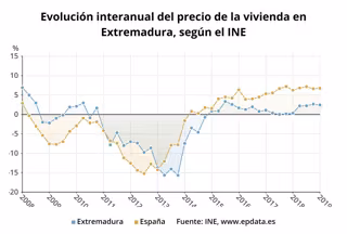 Asimismo, en lo que va de año en la región extremeña el precio de la vivienda libre ha subido un 1,1 por ciento, según el Índice de Precios de Vivienda (IPV) del Instituto Nacional de Estadística (INE) publicado este viernes.