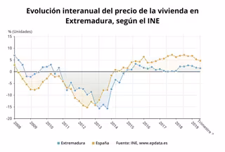 Por tipo de vivienda, el precio de la vivienda usada subió un 0,1% trimestralmente en Extremadura, mientras que la media fue del 1,6%. El precio de la vivienda nueva registró un incremento del 4,1 por ciento en Extremadura, una de las más altas del país, donde lo hizo a una media del 1,5%.