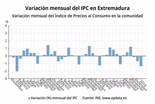 El Índice de Precios de Consumo (IPC) ha bajado en Extremadura un 1,4 por ciento durante el pasado enero con respecto al mes anterior, y en tasa interanual ha subido el 1 por ciento, según ha informado este viernes el Instituto Nacional de Estadística (INE), que detalla que el dato acumulado en lo que va de año se cifra en un -1,4 por ciento.