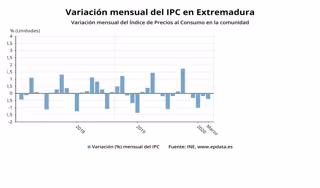 Variación mensual del IPC en Extremadura en el mes de marzo - EPDATA
