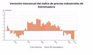 Los precios industriales han bajado en Extremadura un 0,3 por ciento en junio en relación al mes anterior y un 2,7 por ciento en tasa interanual, según ha informado este viernes el Instituto Nacional de Estadística (INE).