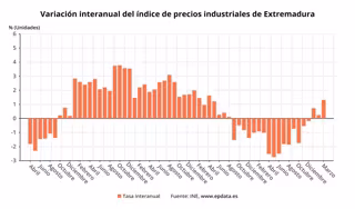 Variación interanual de los precios industriales en Extremadura en marzo - EPDATA