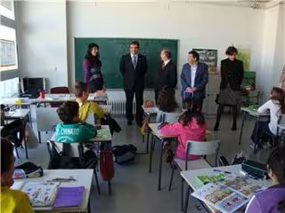 Tras recorrer el nuevo centro educativo junto a la consejera de Educación, Eva María Pérez; el alcalde de la localidad, Fernando Sánchez Canelo, y el director del colegio, Rosendo Martín Fernández, entre otras autoridades educativas y municipales, el presidente ha felicitado a los arquitectos por el diseño de un colegio "abierto al exterior, transparente, ubicado en mitad del campo e integrado en el entorno".