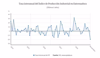 El Índice General de Producción Industrial (IPI) ha bajado en Extremadura un 19,4 por ciento el pasado mes de noviembre en relación al mismo mes de 2017, el mayor descenso del país, según ha informado este viernes el Instituto Nacional de Estadística (INE).