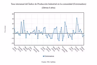 De esta forma, Extremadura es la cuarta comunidad donde más ha retrocedido la producción industrial en el último año, solo por delante de La Rioja (-4,2%), Madrid (-5,4%) y Baleares (-8,2%).