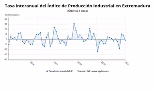 El Índice General de Producción Industrial (IPI) ha bajado en Extremadura un 1,7 por ciento el pasado mes de enero en relación al mismo mes de 2019, según ha informado este viernes el Instituto Nacional de Estadística (INE).