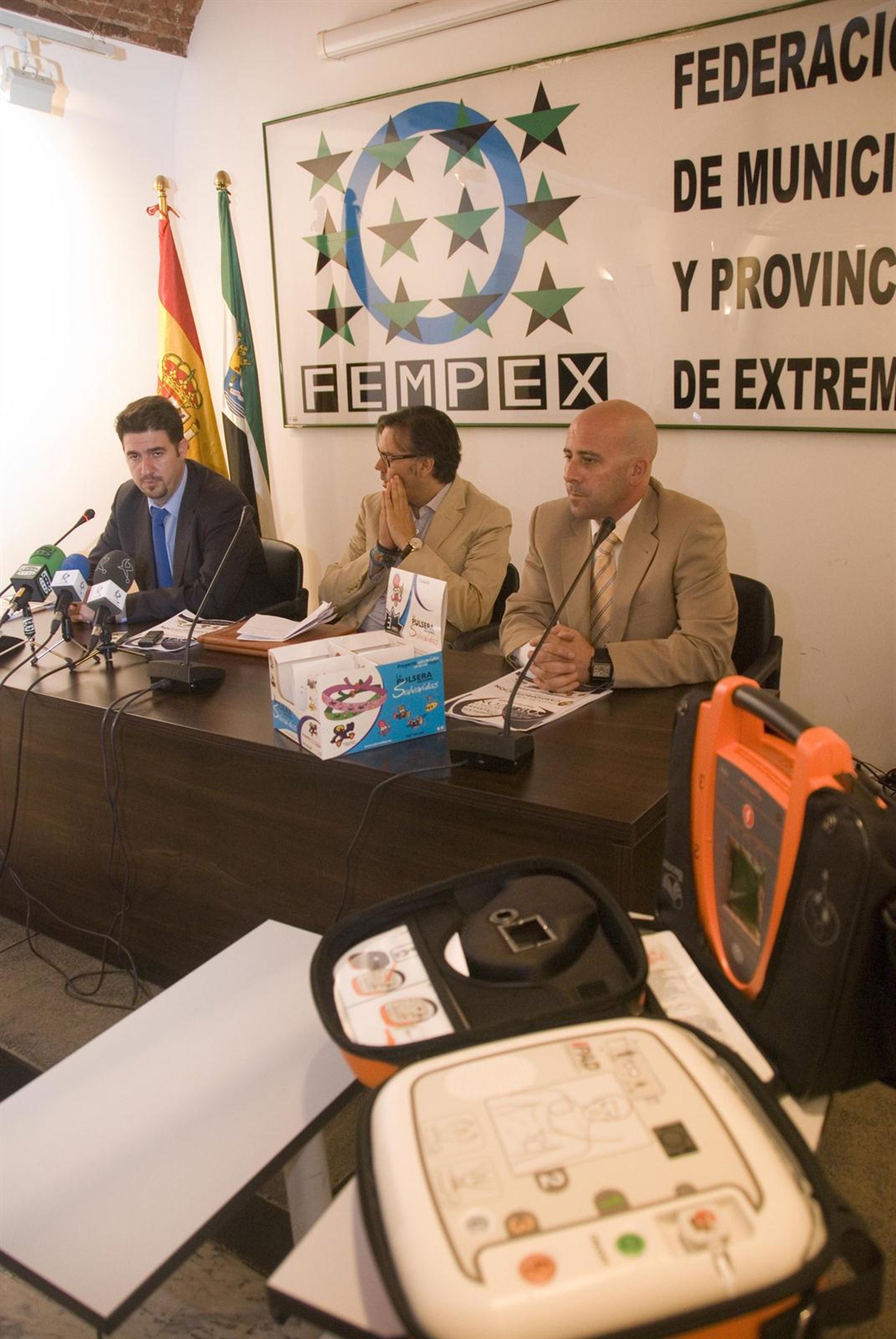 La Federación de Municipios y Provincias de Extremadura (Fempex) y la empresa ANEK S3 han rubricado este miércoles con convenio de colaboración cuyo objetivo es la incorporación de los consistorios de la región al proyecto 'Salvavidas', una iniciativa que ofrece a los ayuntamientos la posibilidad de adquirir desfibriladores de manera gratuita.