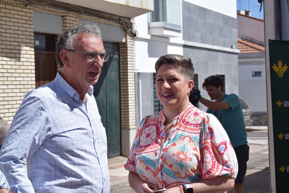 La portavoz del PSOE extremeño, Soraya Vega, y el alcalde y candidato a la reelección a la Alcaldía de Don Benito, José Luis Quintana. - PSOE EXTREMADURA