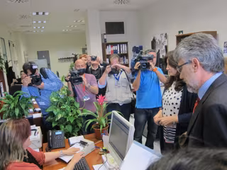 El portavoz del Grupo Parlamentario Socialista, Valentín García, ha acudido a las 11,30 horas de este miércoles al registro de la Asamblea de Extremadura, acompañado por diversos responsables del PSOE extremeño, para presentar esta moción de censura, que está firmada por los 28 diputados socialistas en la Asamblea de Extremadura.